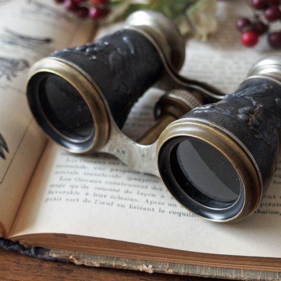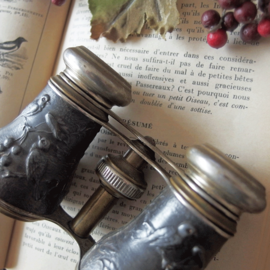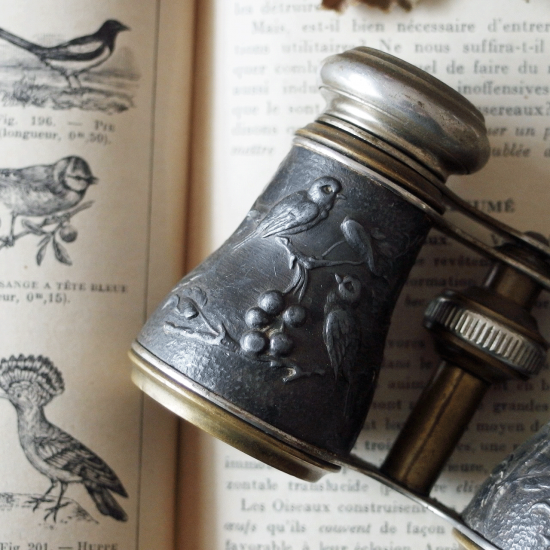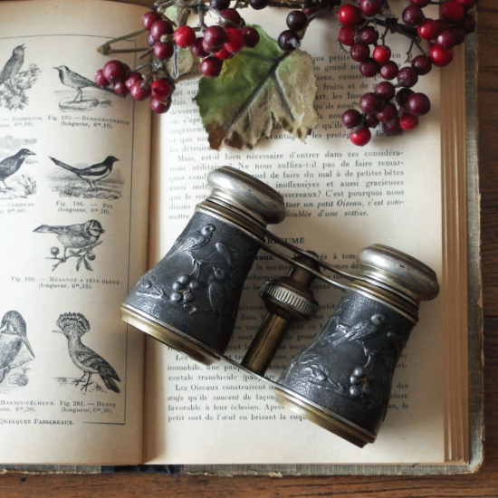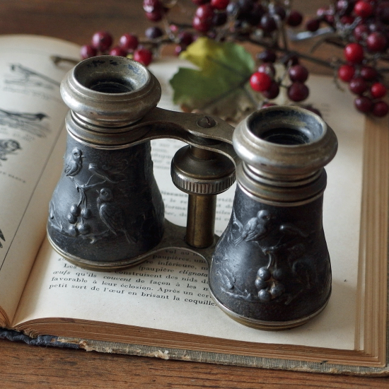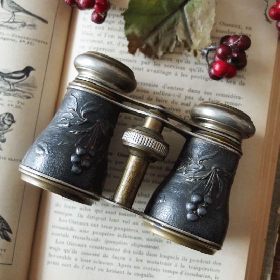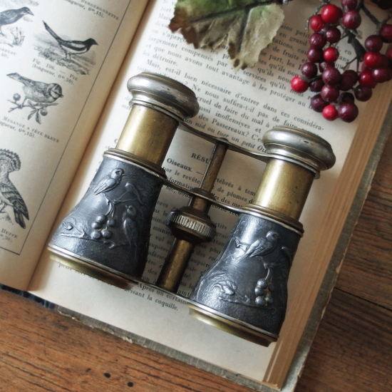 フランスアンティーク 鳥と木の実のオペラグラス 真鍮とメタルの双眼鏡