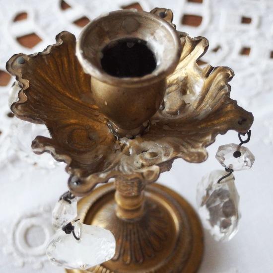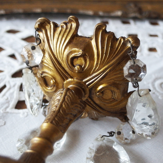 フランスアンティーク シャンデリアパーツと真鍮のキャンドルスタンド 2個セット