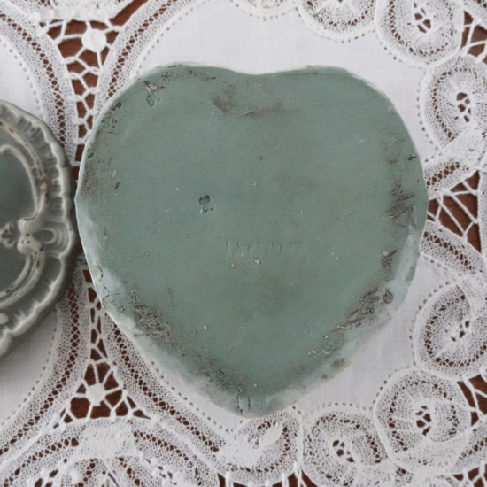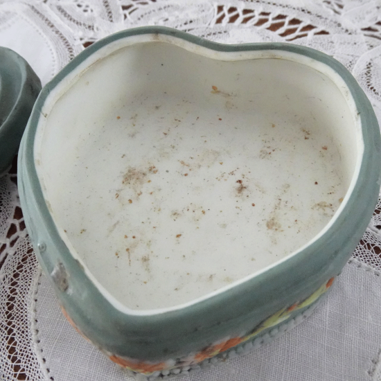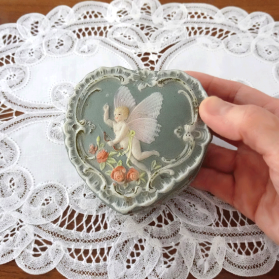 フランスアンティーク キューピッドとハート 陶器のボンボニエール 蓋付き小物入れ