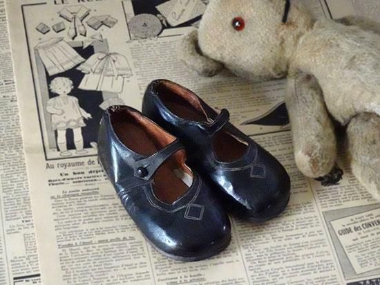 フランスから届きましたストラップ付き子供用の黒い革靴です。