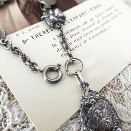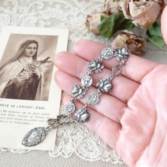 フランスアンティーク リジューの聖テレーズ 薔薇 キリスト教モチーフのメダイ シルバープレート製ブレスレット