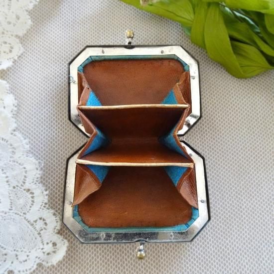 フランスアンティーク 19世紀 マザーオブパールと革のコインパース がま口財布