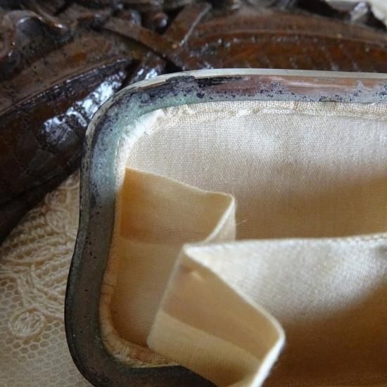 フランスアンティーク 19世紀後期 マザーオブパールとレザーのコインパース ロカイユ装飾