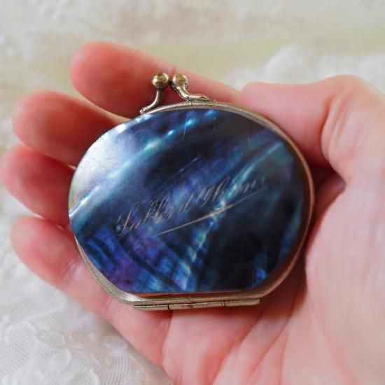 フランス 20世紀初期 コバルトブルーのマザーオブパール がま口のコインパース Sables d'Olonne サーブル・ドロンヌ