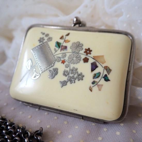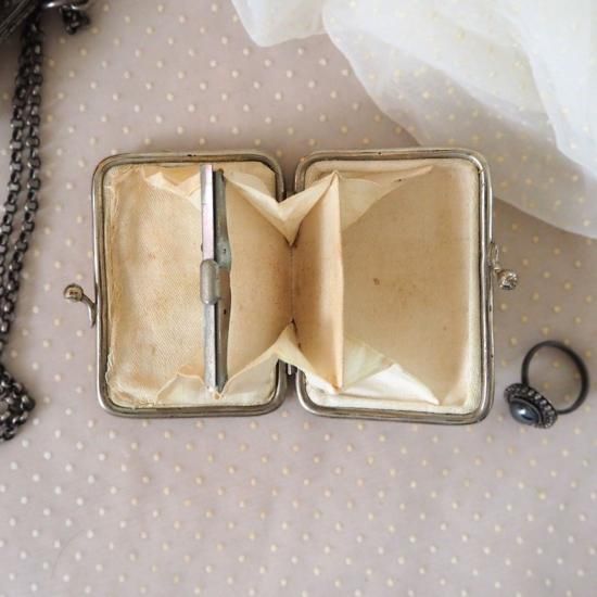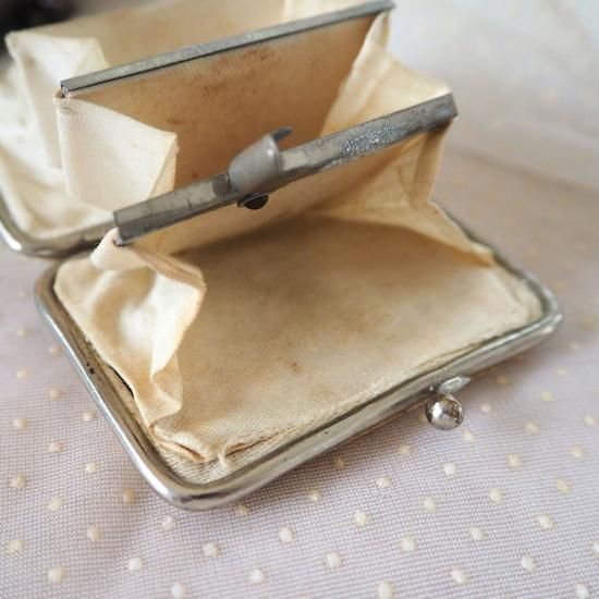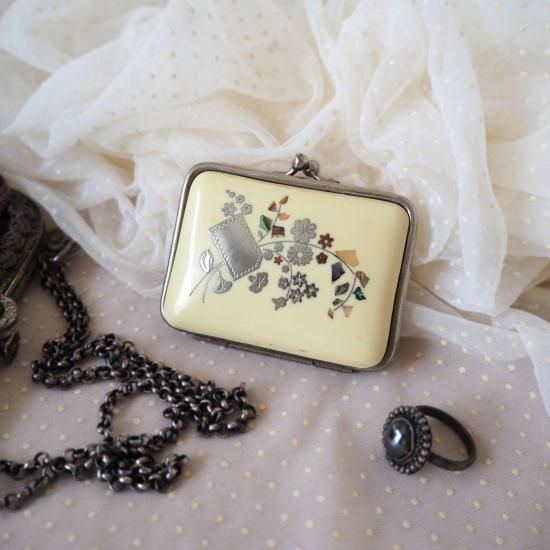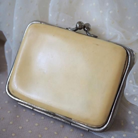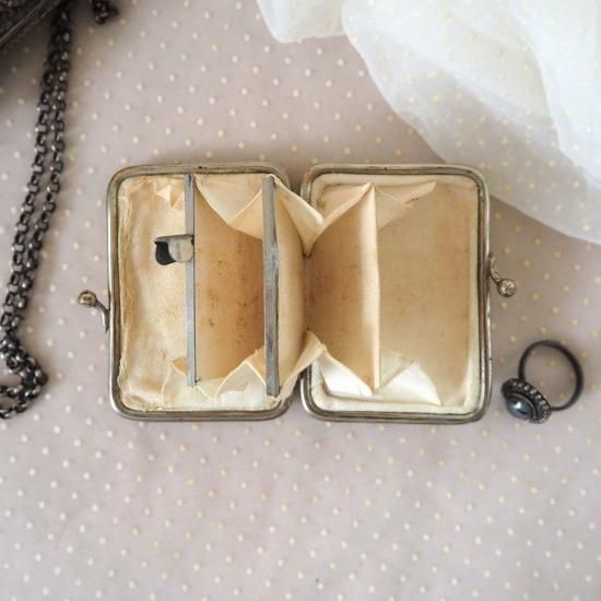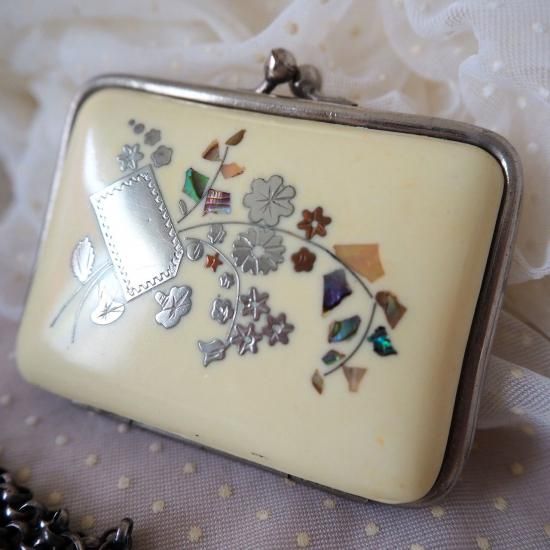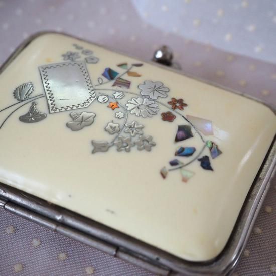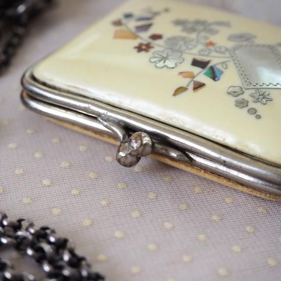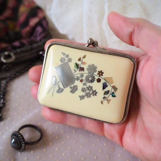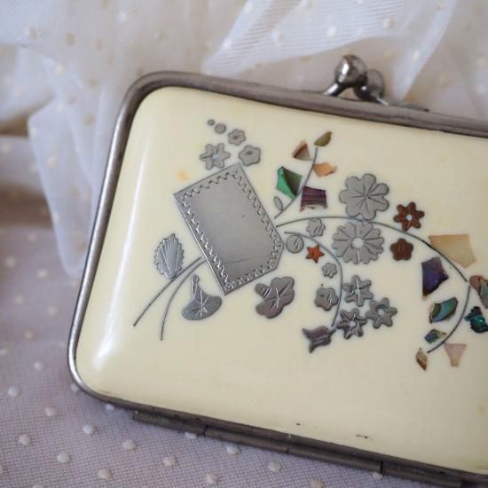 フランスアンティーク セルロイドのコインパース ポルトモネ マザーオブパールとシルバープレートの象嵌 がま口の小さなお財布