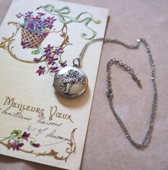フランスアンティーク お花のパニエとリボン ロケットペンダントのチャーム ペンダントトップ SV800 チェーン付き