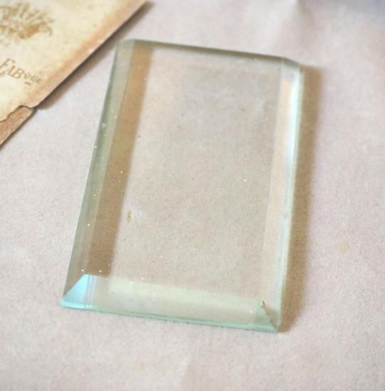 ベベルガラスに微細なチップや付着した小さな汚れが見られますが、