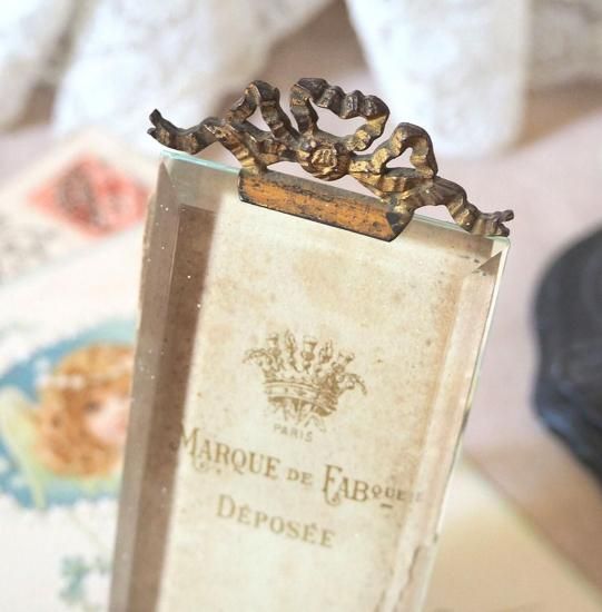 フランスパリ製のリボンモチーフとベベルガラスの小さなフォトフレームです。