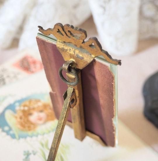 フランスアンティーク 20世紀初頭 小さなリボンフレーム オルモル装飾とベベルガラス 10.2cm MARQUE DE FABRIQUE DÉPOSÉE