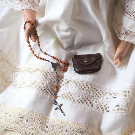 ビスクドール用に作られたとても小さなロザリオと革ケースのセットです。